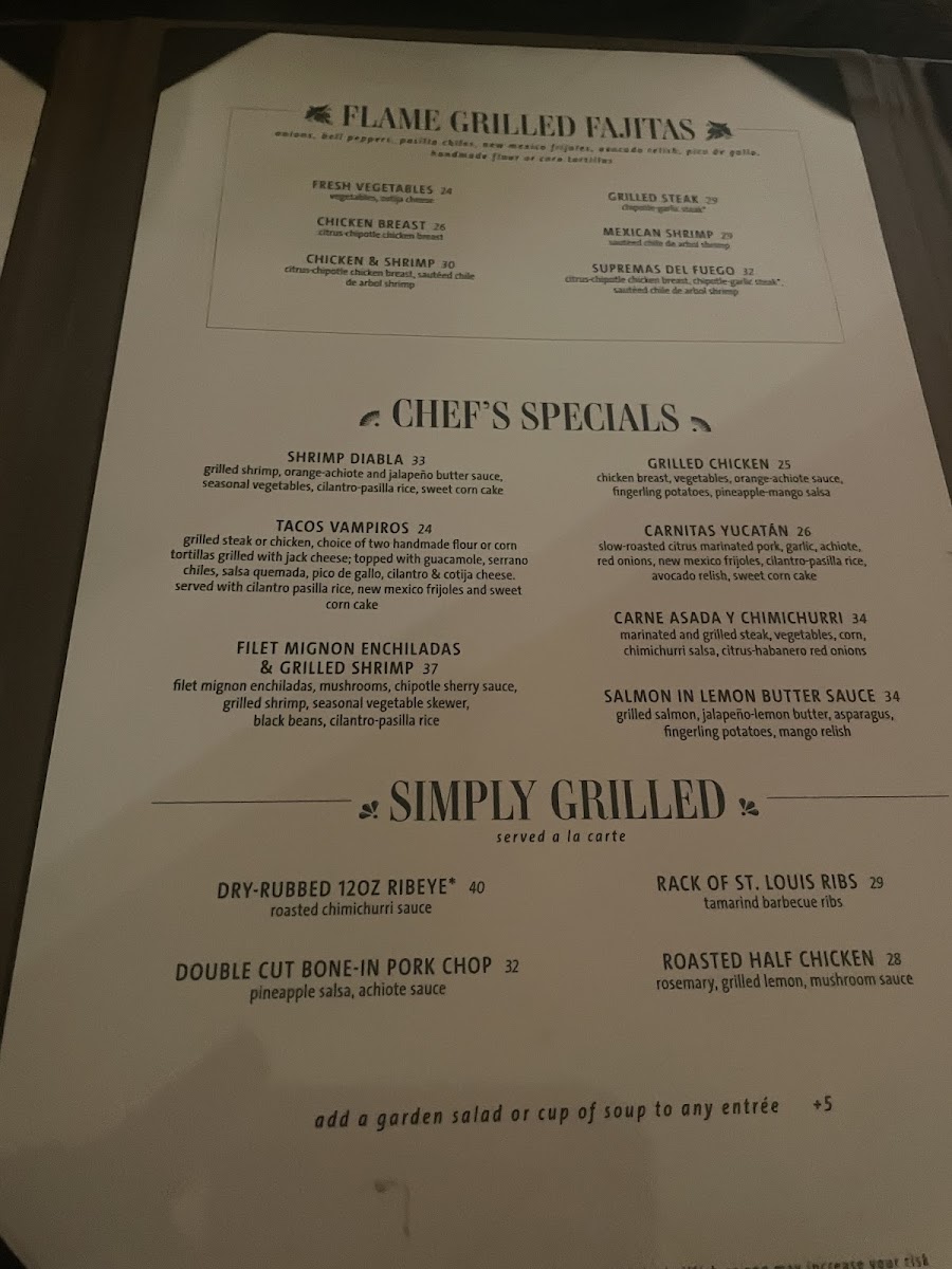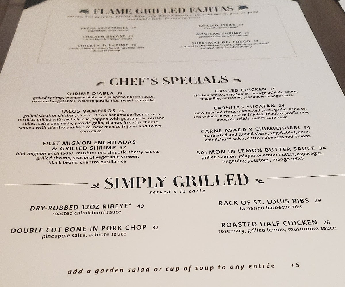 Grilled steak , choice of two handmade flour or corn tortillas, grilled with jack cheese; topped with guacamole, serrano chiles, salsa quemada, pico de gallo, cilantro & cotija cheese. served with cilantro-pasilla rice, new mexico frijoles and sweet corn cake