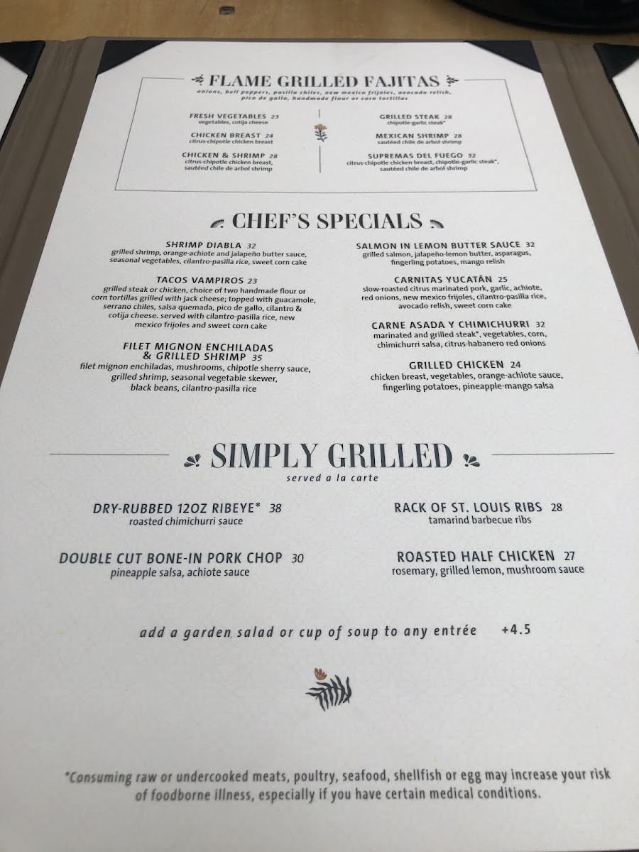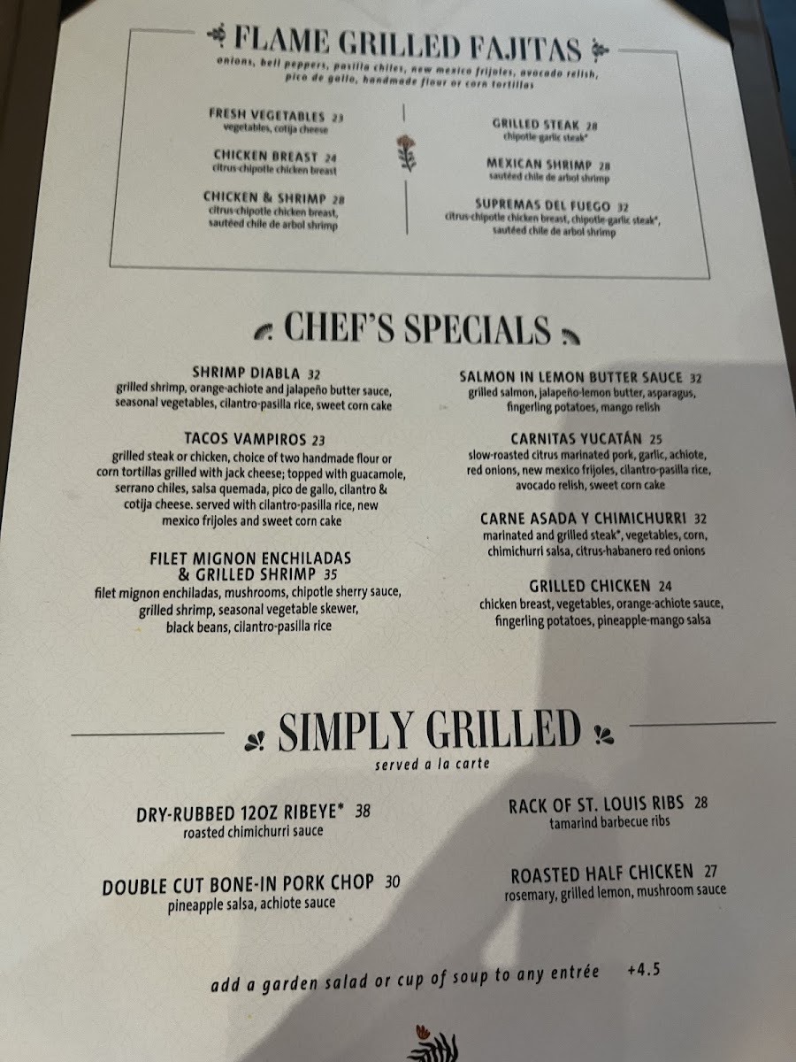 Grilled chicken, choice of two handmade flour or corn tortillas, grilled with jack cheese; topped with guacamole, serrano chiles, salsa quemada, pico de gallo, cilantro & cotija cheese. served with cilantro-pasilla rice, new mexico frijoles and sweet corn cake